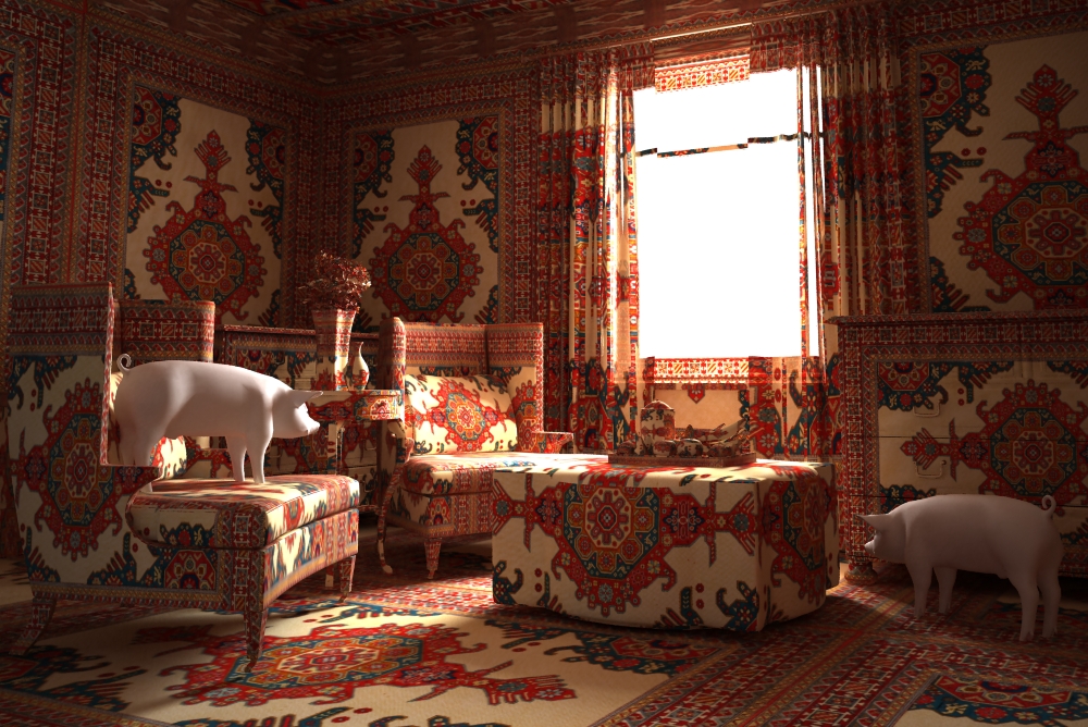 Особую роль в создании мебели и аксессуаров играют орнаменты: это интерпретации шекинского шебеке, губинского зейшура и, конечно, карабахского челеби, в честь которого был назван бренд. Не зря я упомянул именно об интерпретации орнаментов, так как они видоизменяются — цвет, форма, — но фундамент остаётся.