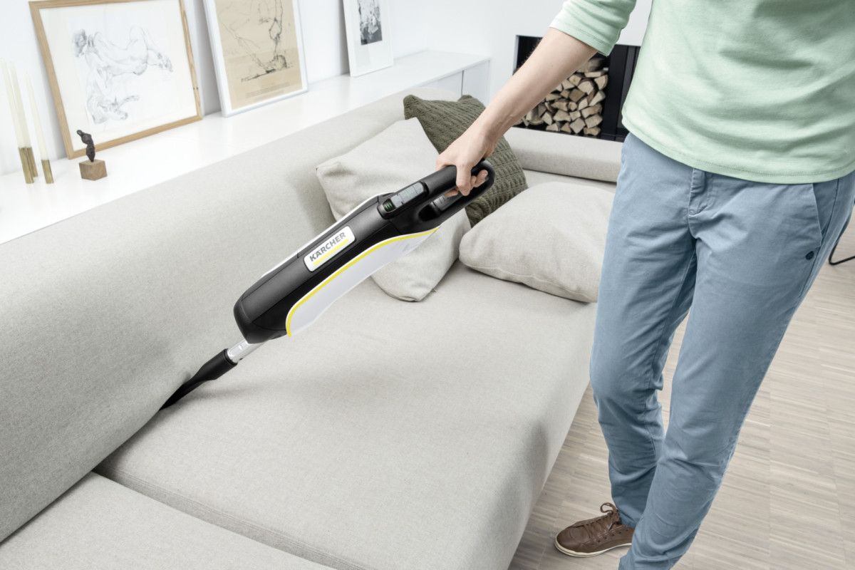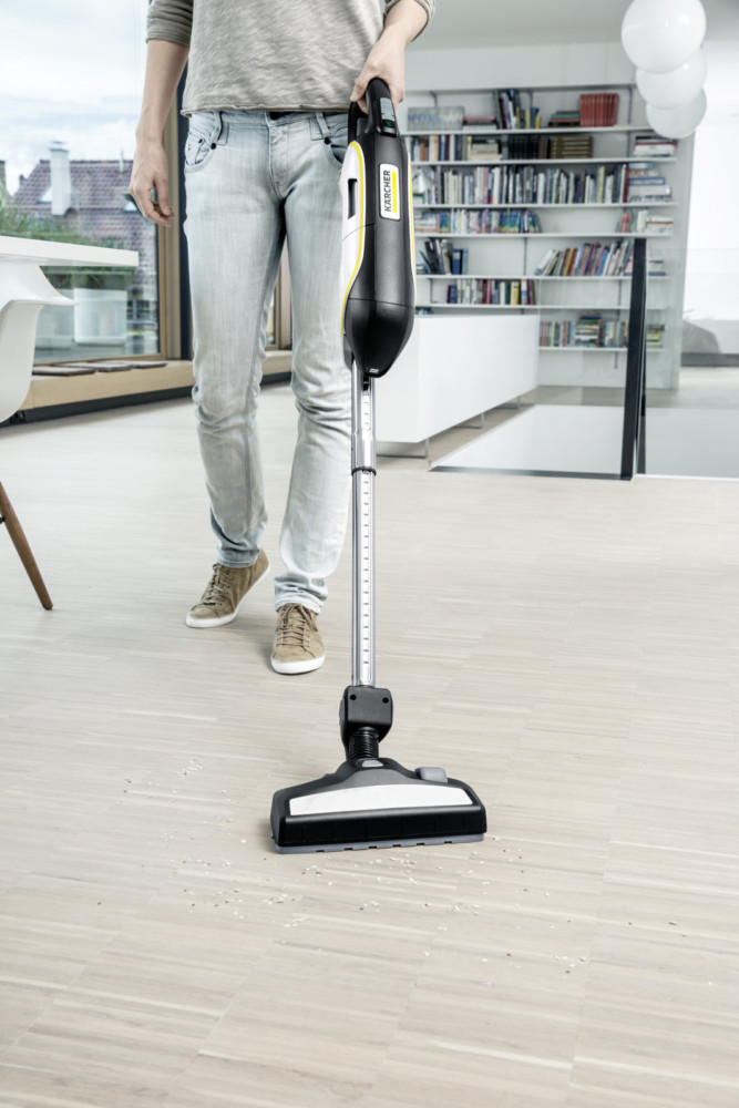 Решением всех этих проблем может стать аккумуляторный пылесос, например VC 5 Cordless от Kärcher. Преимущества модели — сочетание высокой силы всасывания со сниженным уровнем шума и компактным размером (всего 62 см в сложенном состоянии). Полы, мягкая мебель, ступеньки лестницы и даже книжные полки — с малогабаритным беспроводным пылесосом VC 5 Cordless от Kärcher уборка становится намного быстрее.